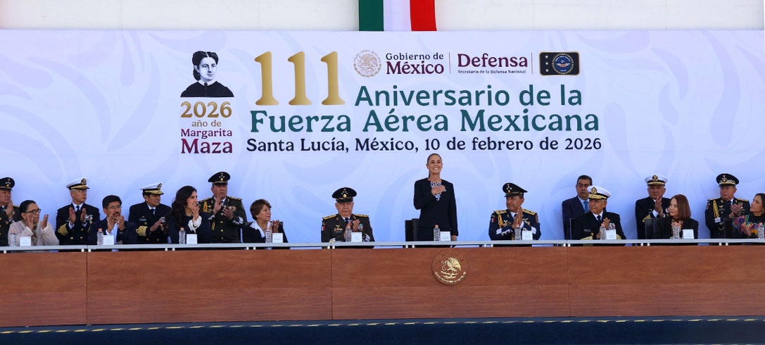 Zumpango, Mex. Durante la conmemoración del 111 aniversario de la Fuerza Aérea Mexicana (FAM), la presidenta Claudia Sheinbaum Pardo, señaló «que ningún gobierno puede sostenerse si se desconecta de las demandas y los anhelos del pueblo», y dijo que la Marcha de la Lealtad –y mencionó otras las celebraciones de fechas y acontecimientos históricos que se relaciona con las fuerzas armadas–, «nos recuerda también que México debe cuidar celosamente su soberanía, porque a lo largo de la historia, las amenazas a nuestra independencia no siempre vinieron de fuera, sino también de quienes abrieron la puerta a la injerencia extranjera”.