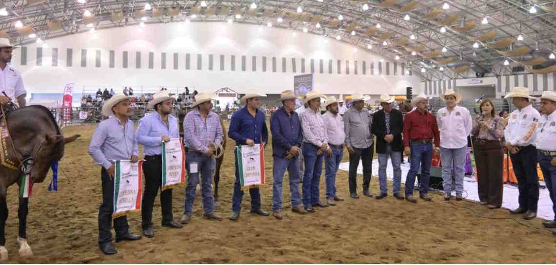 En este marco, encabezó la entrega de banderines a las ganadoras del Campeonato Nacional de la raza Iberoamericano, en la categoría hembras, organizado por la Asociación de Criadores del Caballo Iberoamericano, con ejemplares provenientes del municipio de Jesús Carranza, que se distinguieron por la calidad genética y el trabajo de los criadores.
